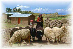 Sheep farming on the isle of Taquile, Lake Titicaca