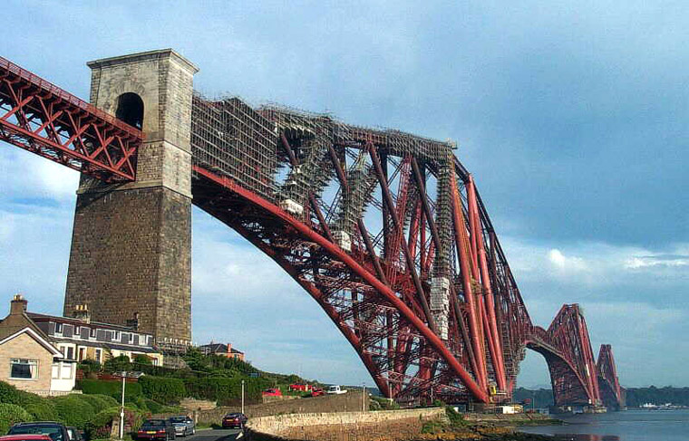 Stunning view of the Forth Railway Bridge, the world's second longest cantilever bridge completed in 1890, from North Queensferry, Fife