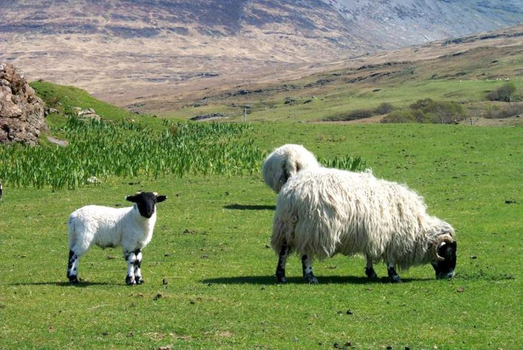 Sheep and lamb grazing by Ben More, Isle of Mull